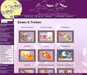 Bei Little Luna gibt es verschiedenste Artikel für Kinder verschiedener Altersstufe. Das Besondere ist, dass man nicht nur den Standard, sondern besondere Artikel findet. So erstreckt sich das Sortiment von szenetypischen Kleidern über Verkleidungen und Spielzeugen bis Gebrauchsartikeln. Außerdem findet man auf den Seiten auch interessanten Ideen und Informationen zur Beschäftigung mit Kindern.